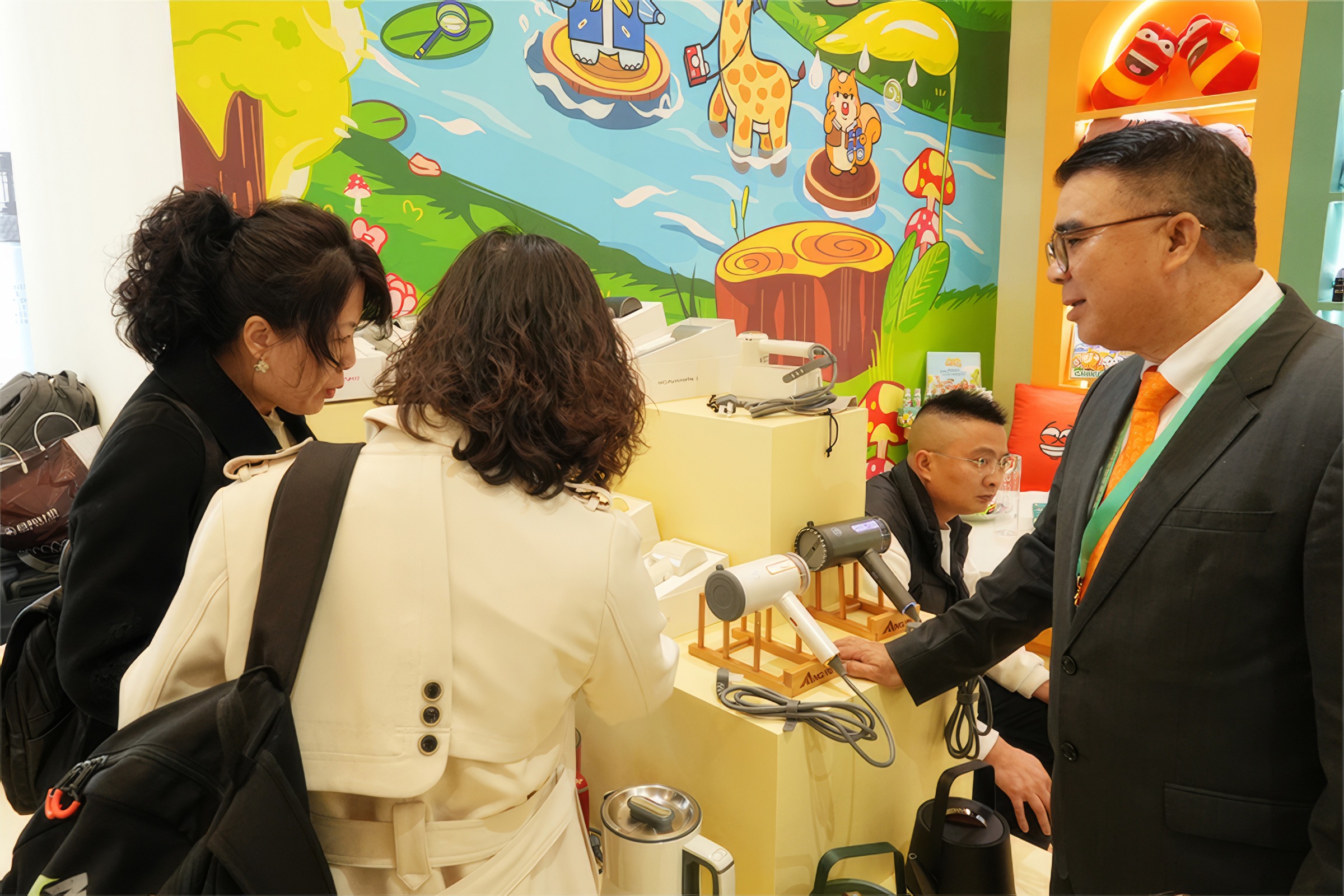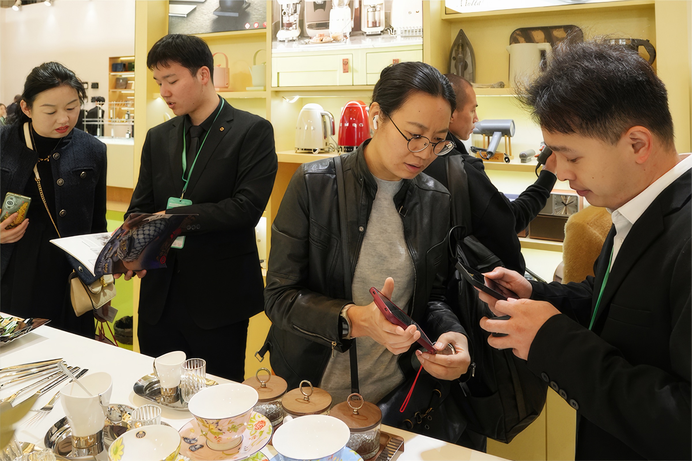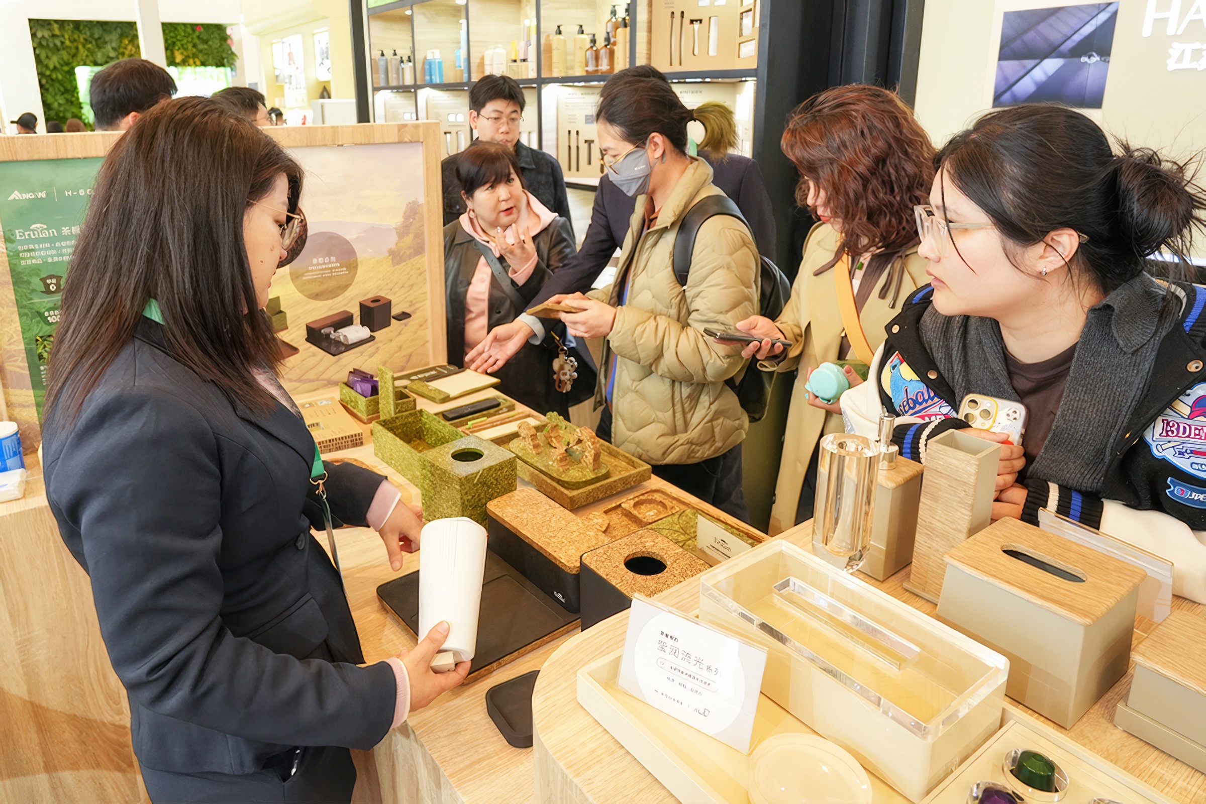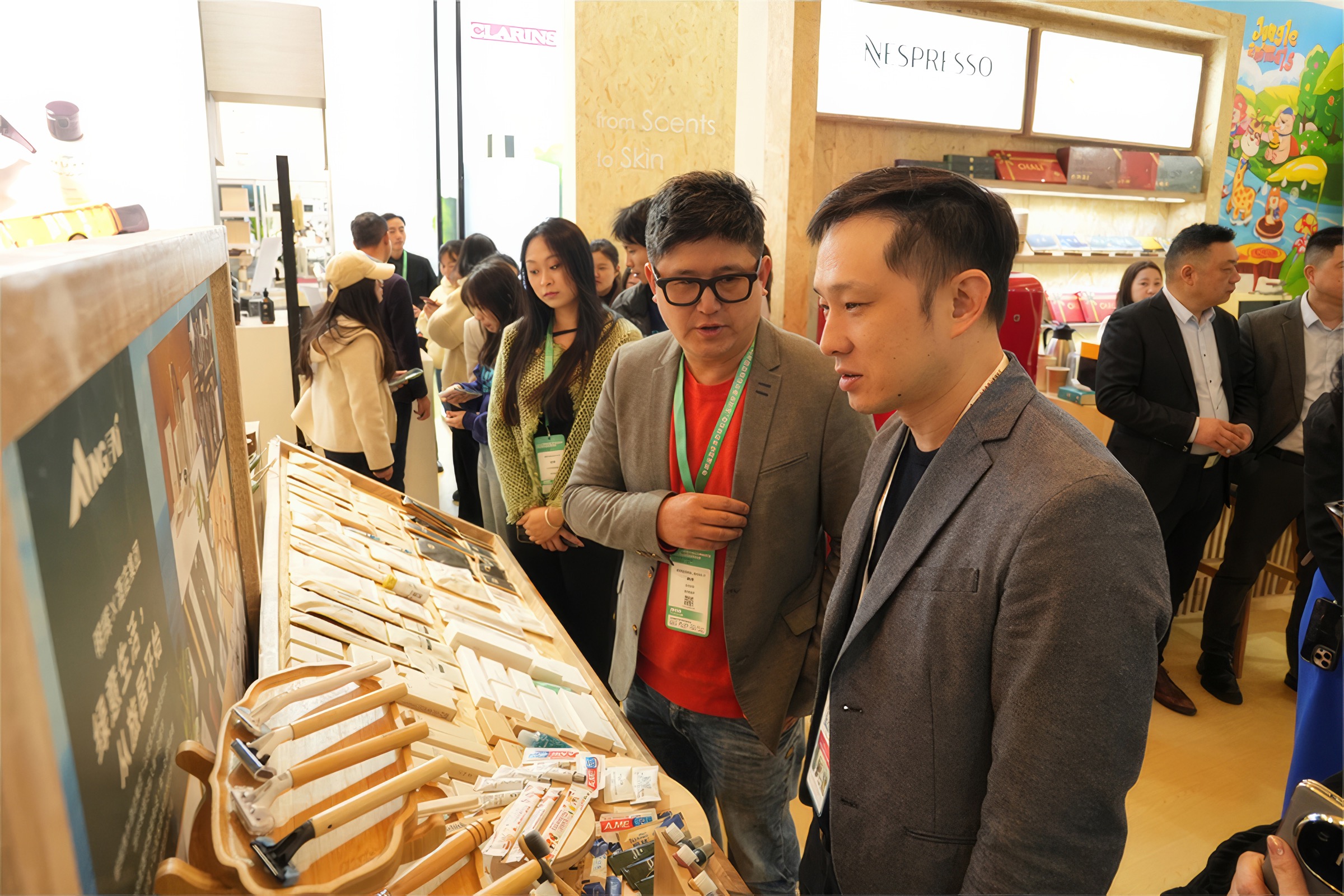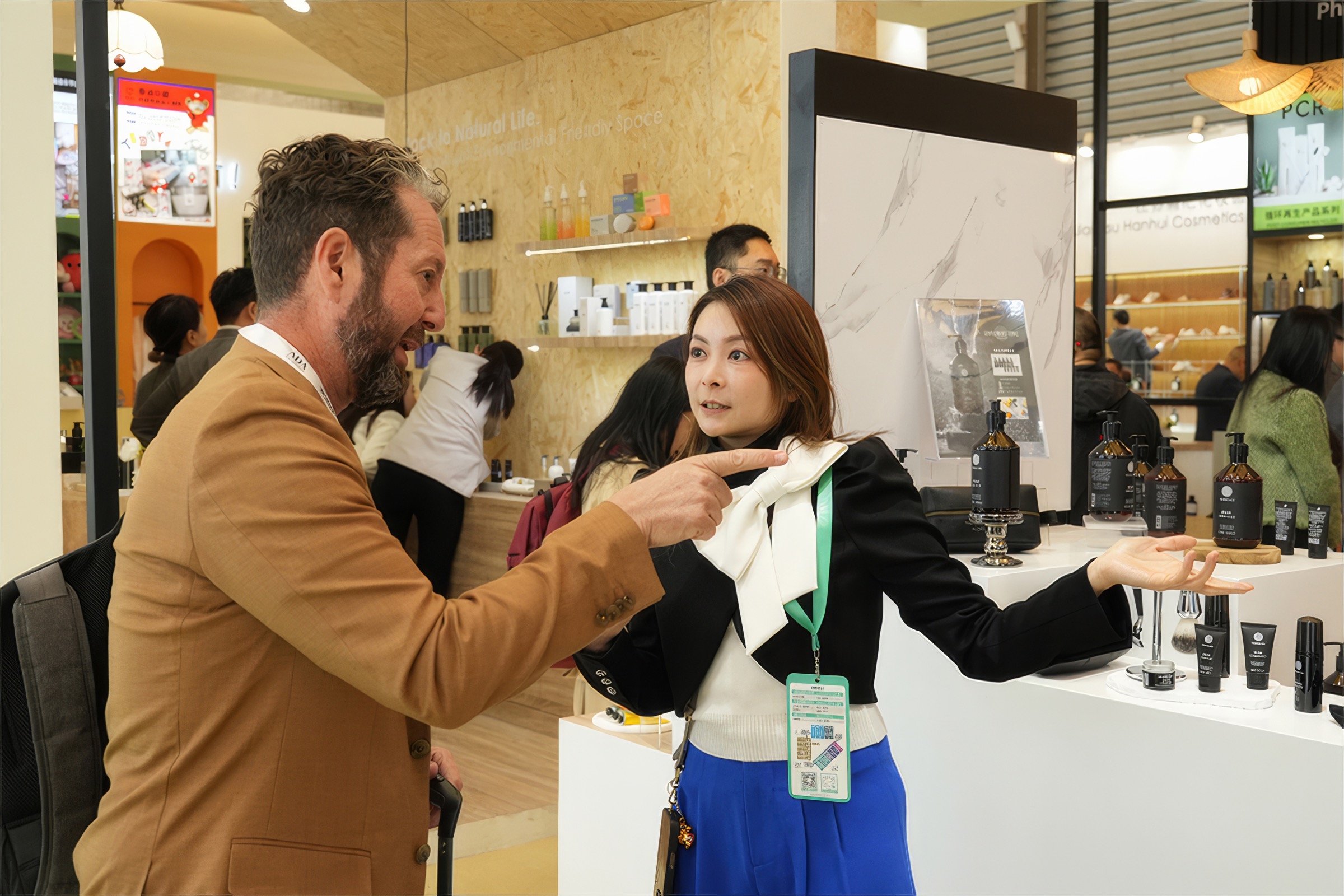 展會期間,觀眾的熱情與展區氛圍交織成一場流動的盛宴。展廳內的香氛體驗、個護產品試用等環節讓現場的氣氛熱烈非常。明輝副總裁劉子剛先生和程俊華先生也親臨現場,與來自世界各地的客人們共同探討環保理念在酒店場景中的創新實踐。