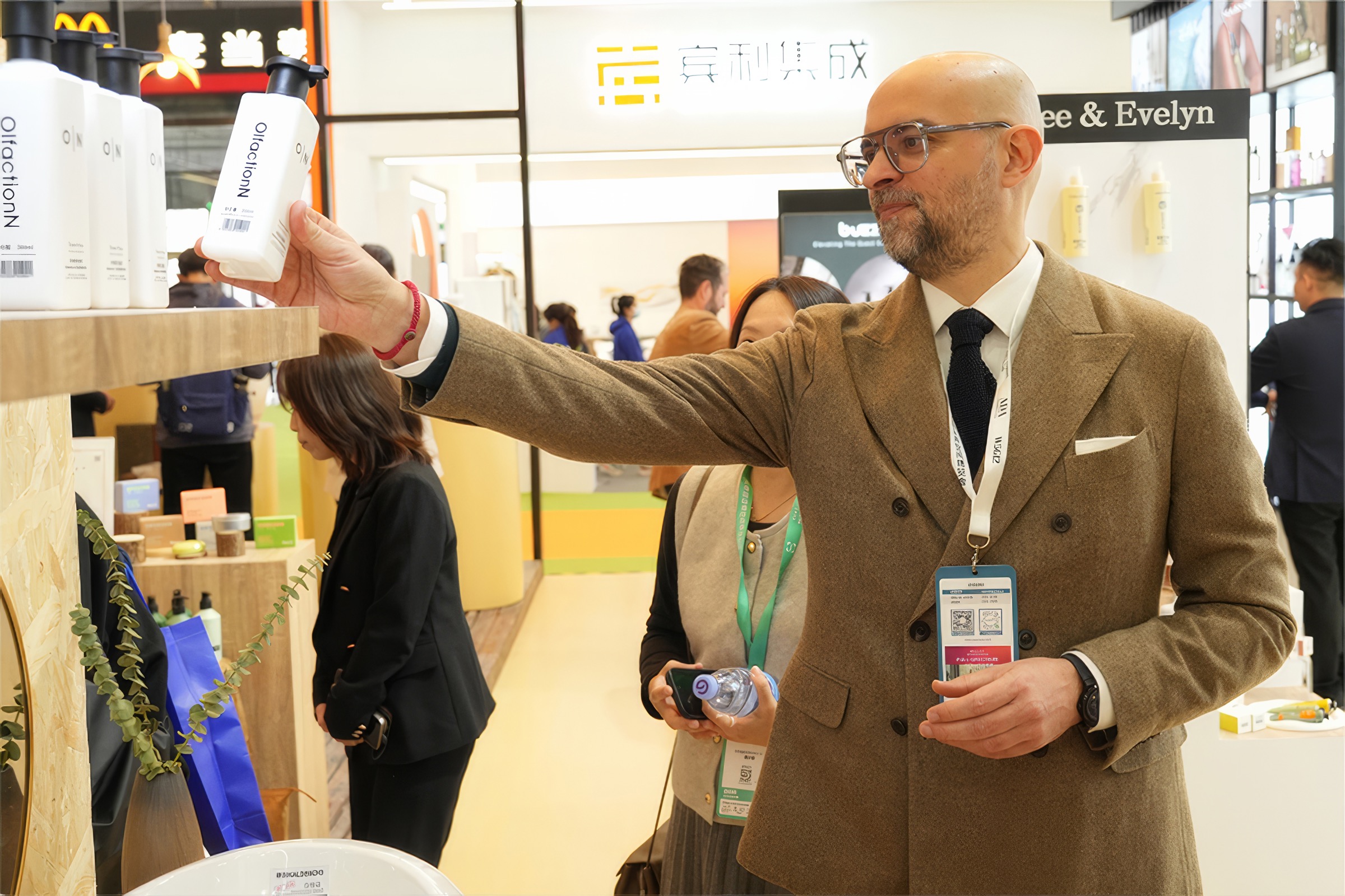 移步品牌展示區,這裡展示著 Molton Brown,Lanvin,Ahava,Jurlique,Lebon,Gentlemen’s Tonic 等高端洗護品牌。Lanvin,Ahava 的品牌方也來到展廳,從“成分趨勢”到“香型偏好”,深入介紹了產品的核心優勢。國際洗護美學與環保理念交織,為人們奉上一場嗅覺與觸覺的精緻體驗。
